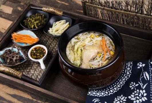 特色餐:品嘗特色餐【興義布依八大碗】。“八大碗”是熱情的布依族人招待客人的最好菜肴,萬峰林的“布依八大碗”,可謂是人人喜愛的上等佳肴,雖然它是布依人家最“老”的菜式,但是卻別具風味,這“八大碗”其實就是八道菜。看似簡單,但是卻非常有寓意,一桌“八大碗”,碗碗各有不同的搭配和燉法,代表著一年四季,身體平安,四面八方,萬事如意。 |